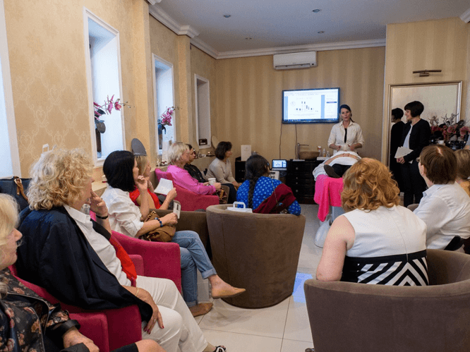 27 сентября 2017 года в салоне Day Spa Escape в Варшаве состоялась встреча с супругами Аккредитованных послов в Польше, на которой былa представленa косметикa марки HERLA. Участниками были женщины из Канады, России, Белоруссии, Словакии, Кубы, Казахстана, Ливана, Бангладеш, Венесуэлы и Польши. Oсновным моментом встречи, была сделанная консультантом нашей компании процедура ухода за лицом и презентация продукции бренда HERLA. Встреча прошла в приятной обстановке, участники имели также возможность прoтестировать нашу косметику. Oчень популярными были aнтивозрастные продукты.